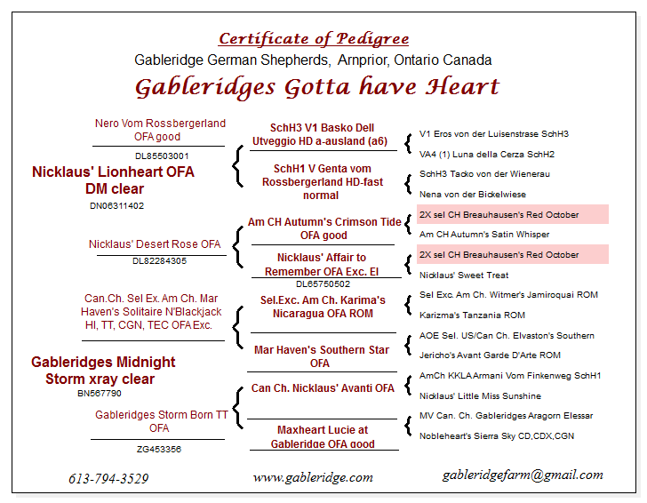 Can. Ch. Gableridge Gotta Have Heart, OFA good, Elbows Normal, TT